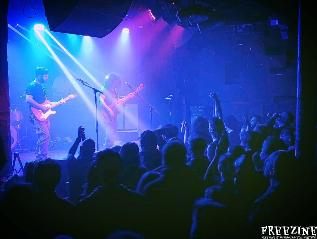 La band, fondata da John Delias (chitarra e voce), Kostas Harizanis (batteria) e John Vagenas (basso e voce) a Salonicco 14 anni, fin da subito è apparsa a suo agio, un po’ come se si trattasse di un ritrovo tra vecchi amici. Insieme a loro sul palco anche Spiros Kouroubetsis alle percussioni e Pantelis Kargas alle tastiere, celati da una spessa coltre di fumo.